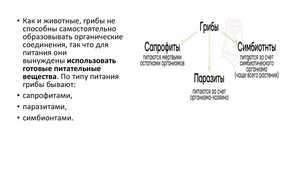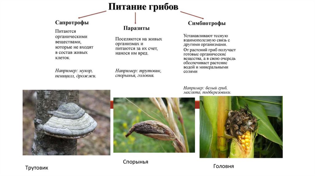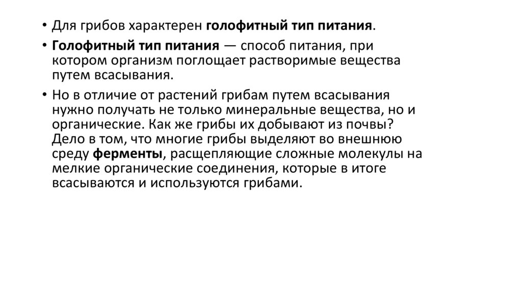 • Для грибов характерен голофитный тип питания.• Голофитный тип питания — способ питания, при