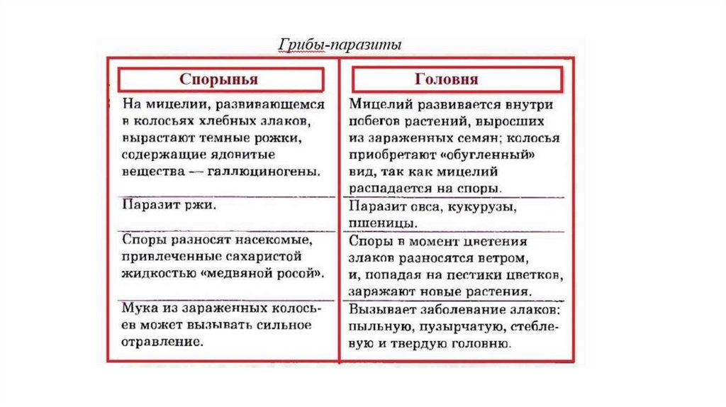 • Заболевания растений, вред сельскому хозяйству (спорынья, головня, ржавчина).