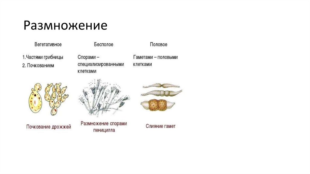 • Плесневые грибы-спорами (образуются в шариках или кисточках