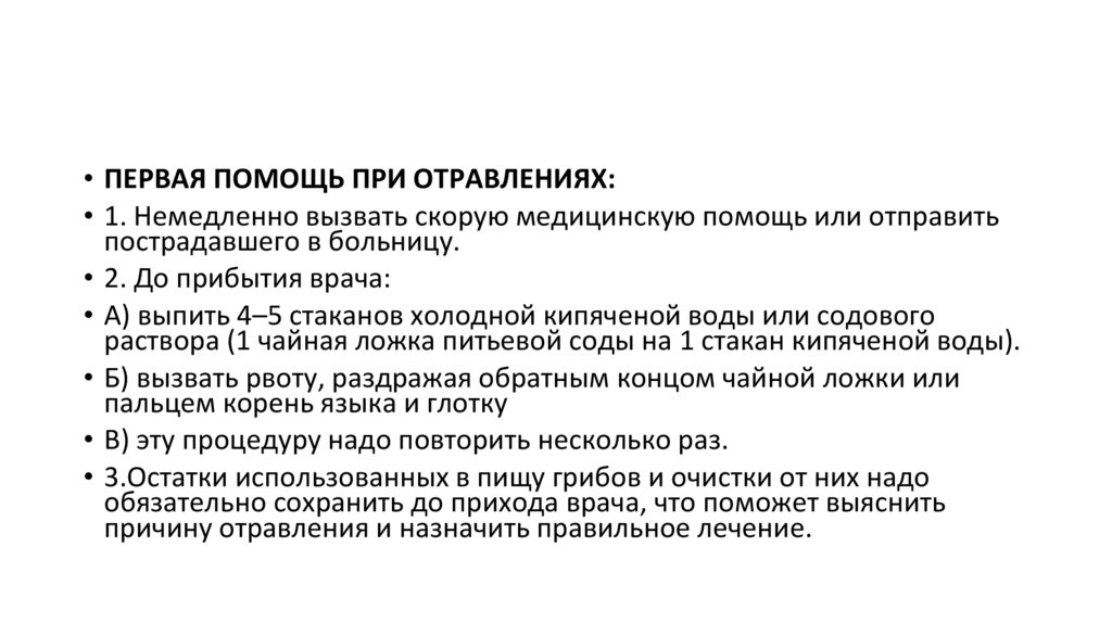 • ПЕРВАЯ ПОМОЩЬ ПРИ ОТРАВЛЕНИЯХ:• 1. Немедленно вызвать скорую медицинскую помощь или отправить