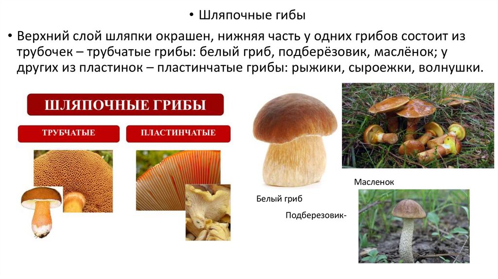 трубочек – трубчатые грибы: белый гриб, подберёзовик, маслёнок; у