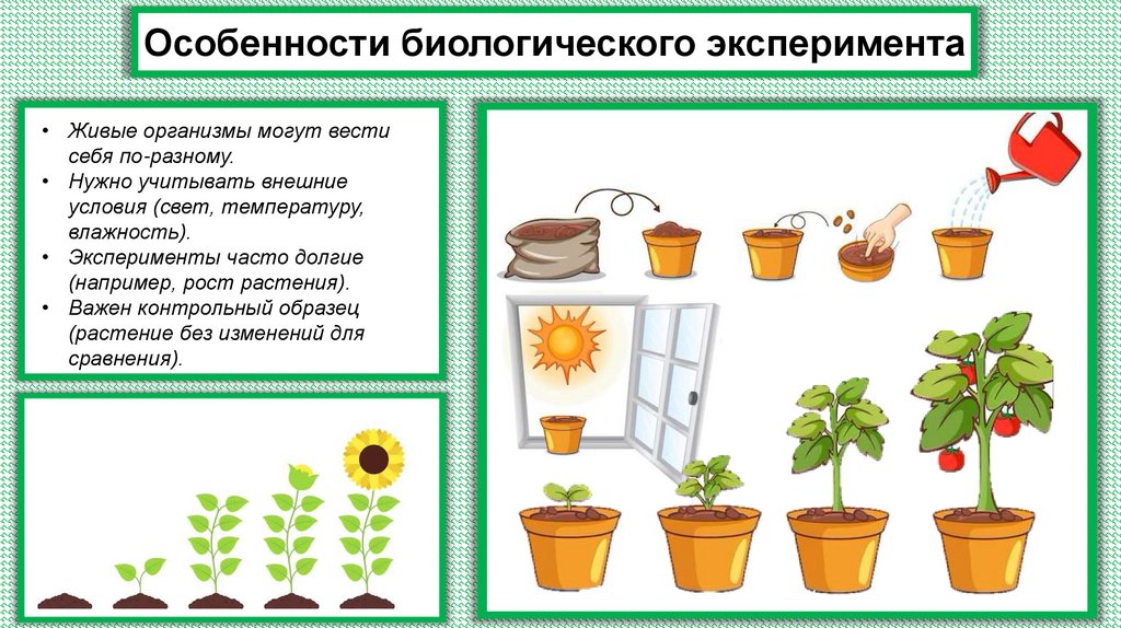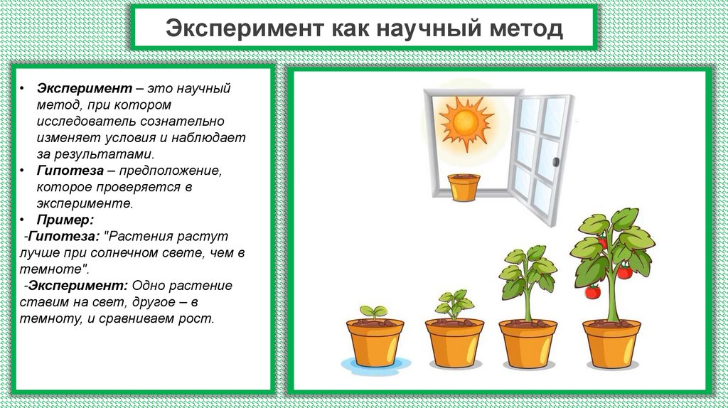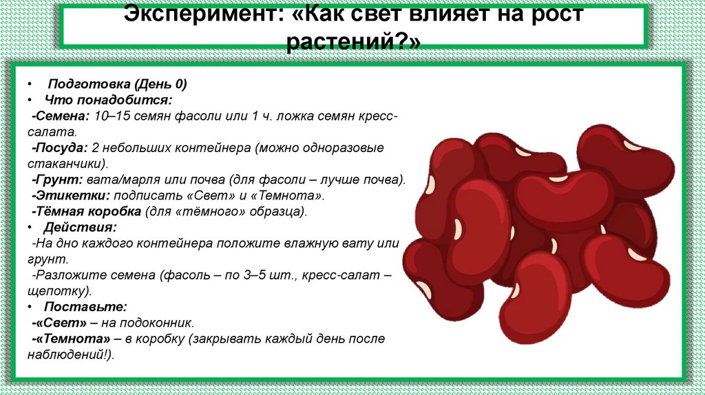 • Эксперимент: Выращивание растений при разном освещении.