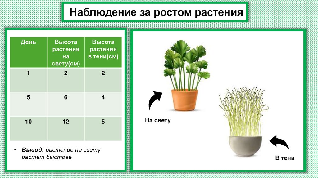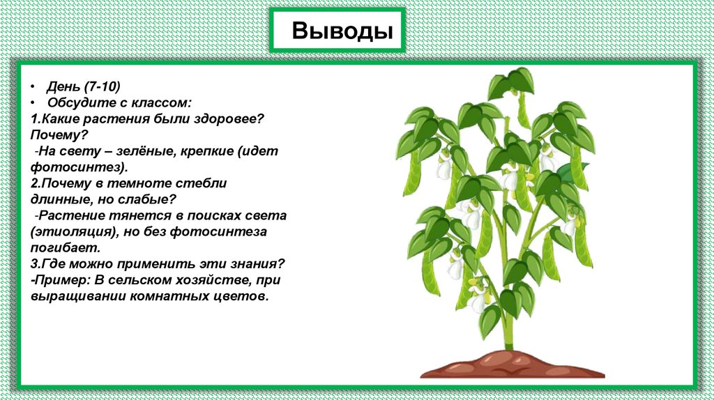 • Вывод: растение на свету