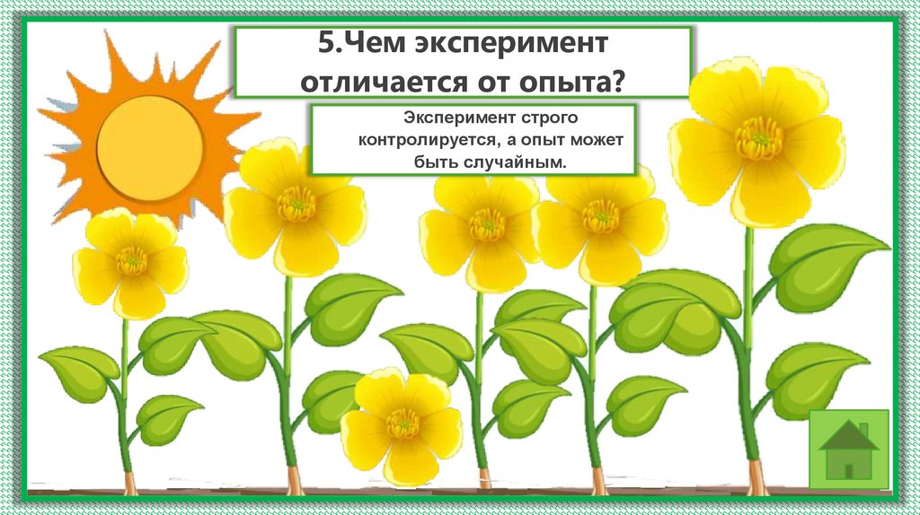 5.Чем экспериментотличается от опыта?