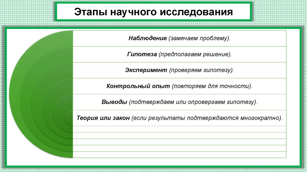 Этапы научного исследованияНаблюдение (замечаем проблему).