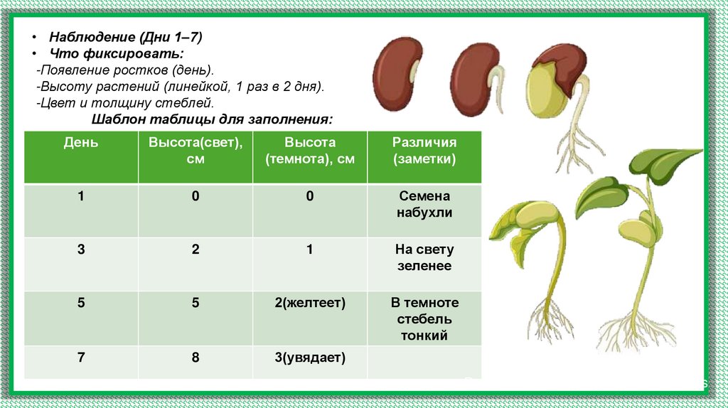 Наблюдение за ростом растенияДень
