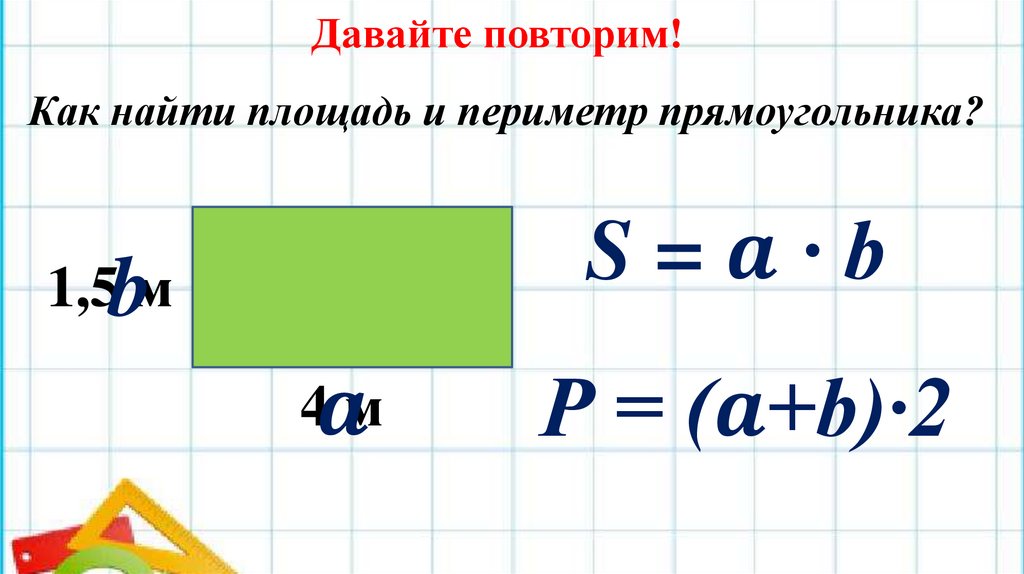 Давайте повторим!Как найти площадь и периметр прямоугольника?