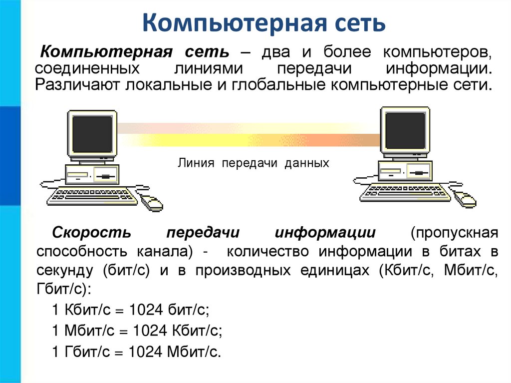 Компьютерная сетьКомпьютерная сеть – два и более компьютеров,