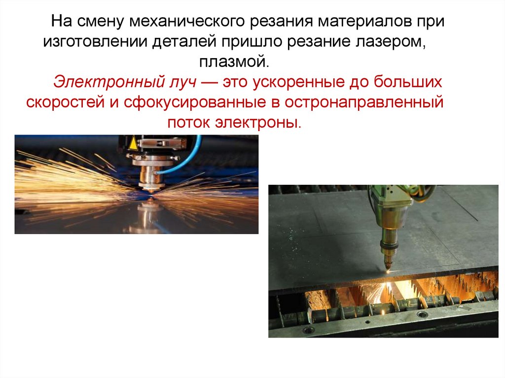 На смену механического резания материалов приизготовлении деталей пришло резание лазером,