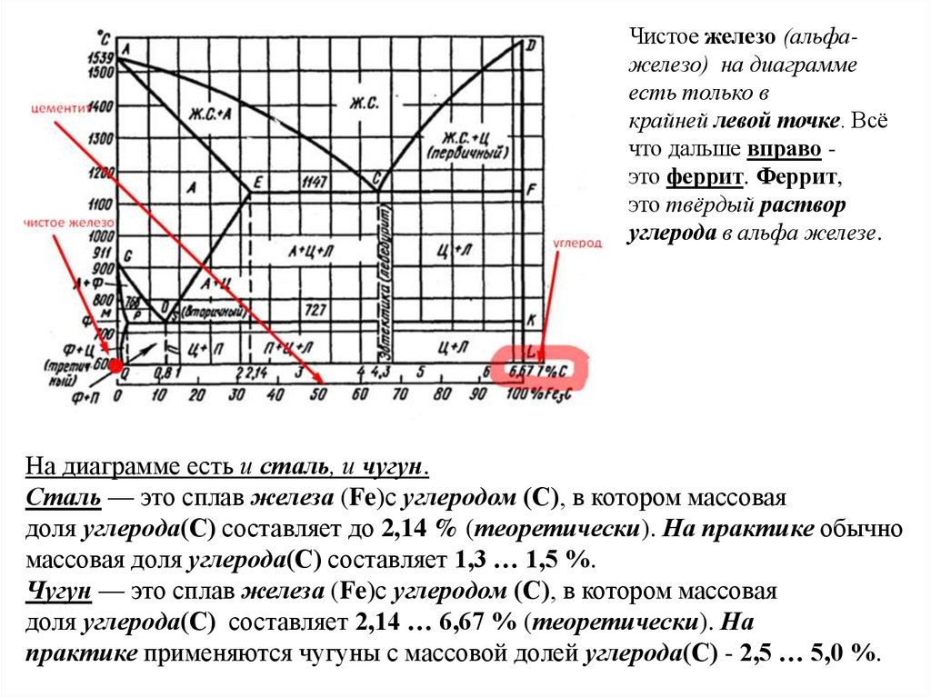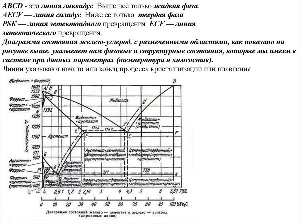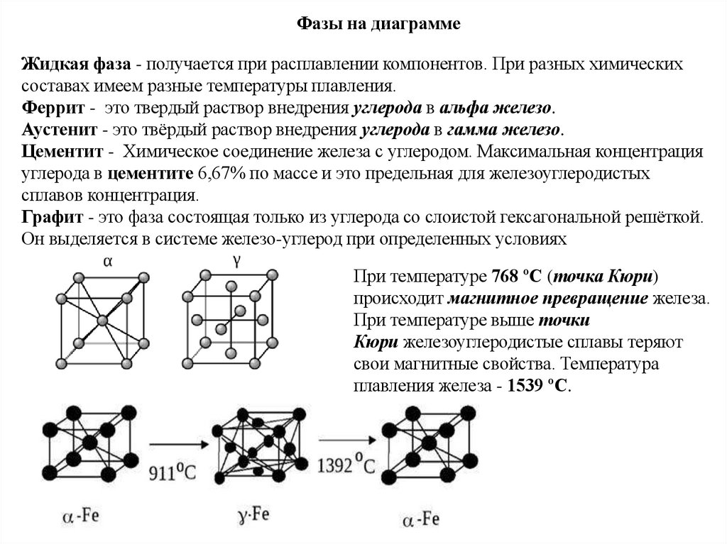 Диаграмма железо-углерод - это отображение фазового состояния сплавов железа
