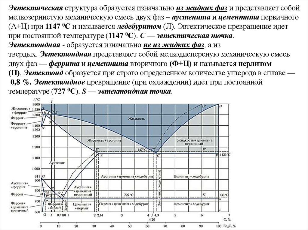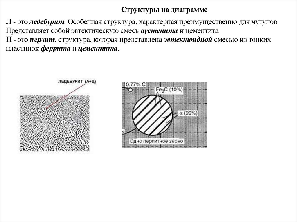 Структуры на диаграммеЛ - это ледебурит. Особенная структура, характерная преимущественно для чугунов.