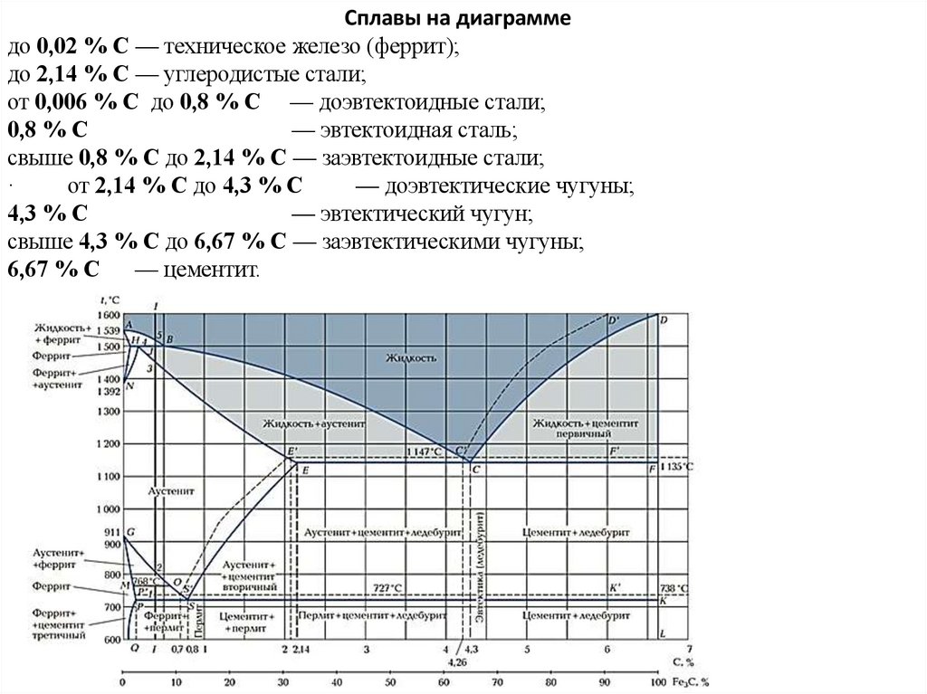 (Fe) с углеродом (C) в зависимости от их химсостава и температуры.