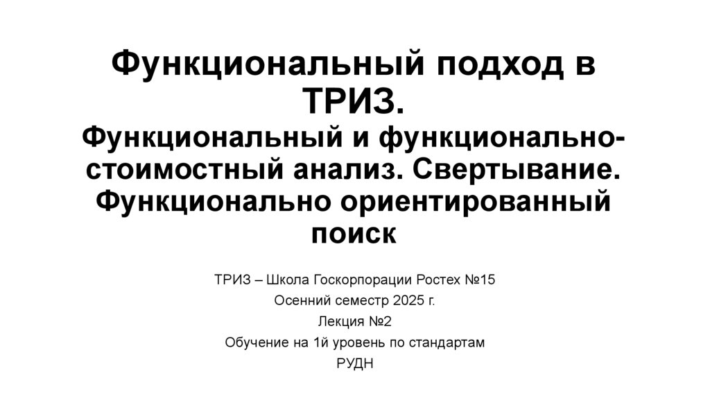 1. Функциональный подход в ТРИЗ. Функциональный и функционально-стоимостный анализ. Свертывание. Функционально ориентированный