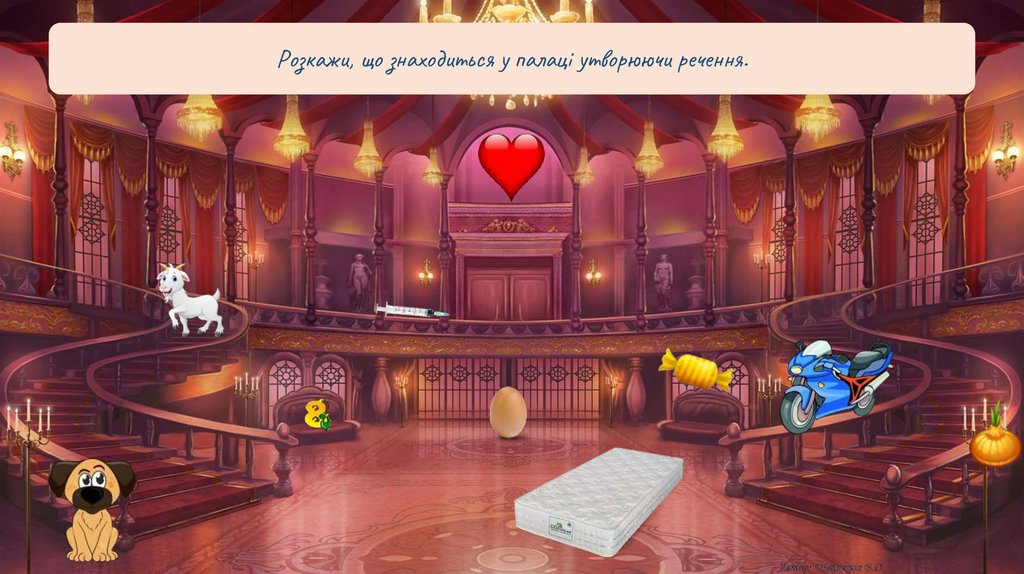 Розкажи, що знаходиться у палаці утворюючи речення.13.