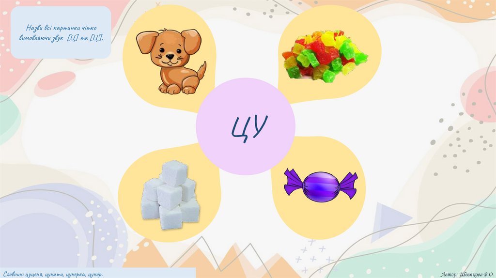 Словник: цуценя, цукати, цукерка, цукор.
