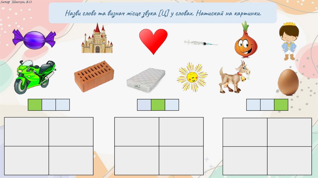 Назви слово та визнач місце звука [Ц] у словах. Натискай на картинки.9.