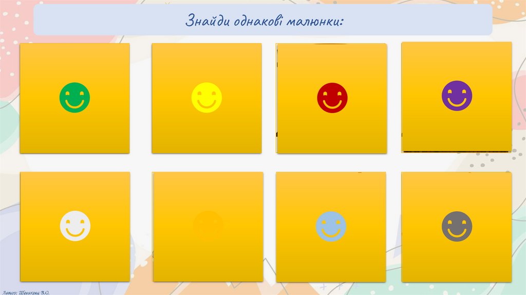 Знайди однакові малюнки:☻
