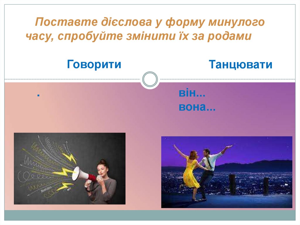 Поставте дієслова у форму минулогочасу, спробуйте змінити їх за родами