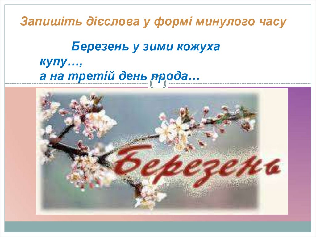 Запишіть дієслова у формі минулого часуБерезень у зими кожуха