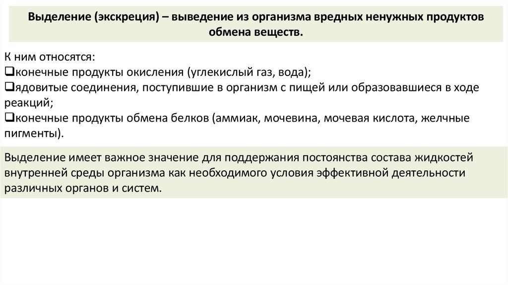 Выделение имеет важное значение для поддержания постоянства состава жидкостей
