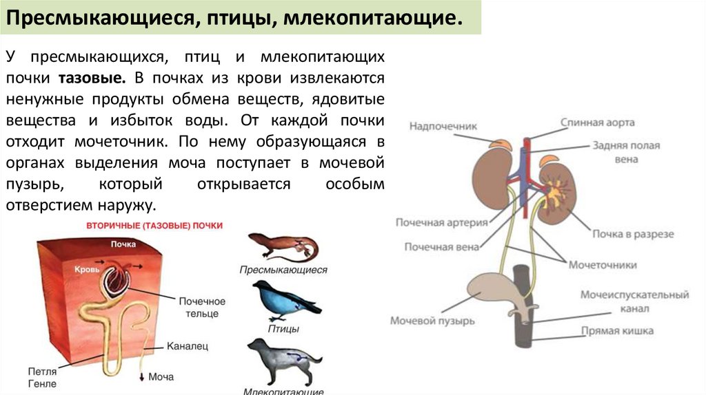 Пресмыкающиеся, птицы, млекопитающие.У пресмыкающихся, птиц и млекопитающих