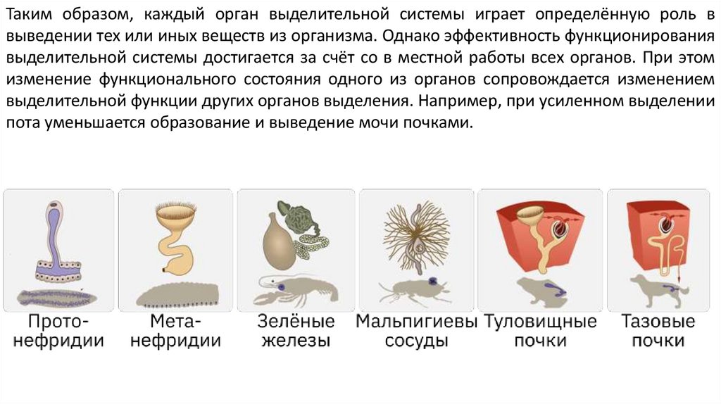 Таким образом, каждый орган выделительной системы играет определённую роль ввыведении тех или иных веществ из организма. Однако эффективность функционирования