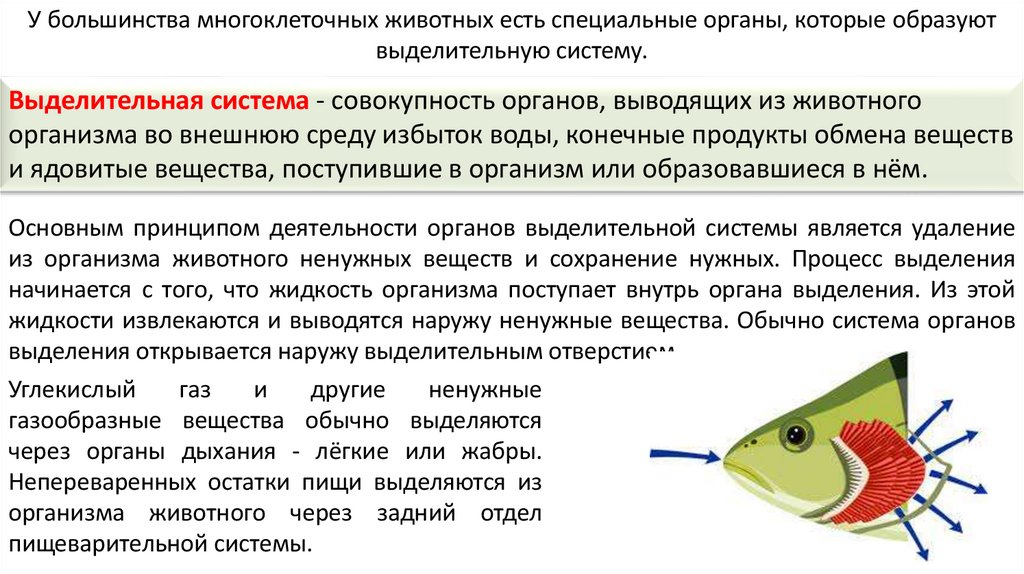 из организма животного ненужных веществ и сохранение нужных. Процесс выделения