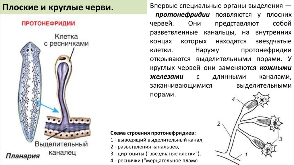 Плоские и круглые черви.Впервые специальные органы выделения —