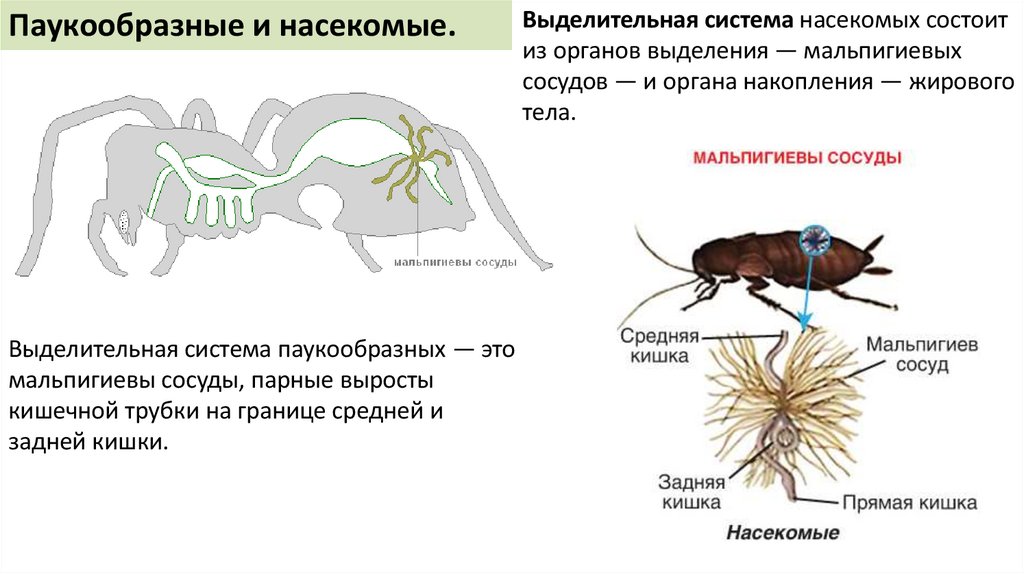 Паукообразные и насекомые.Выделительная система паукообразных — это