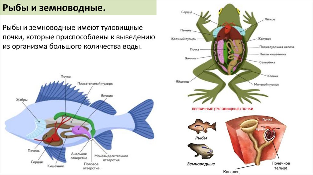 Рыбы и земноводные.Рыбы и земноводные имеют туловищные