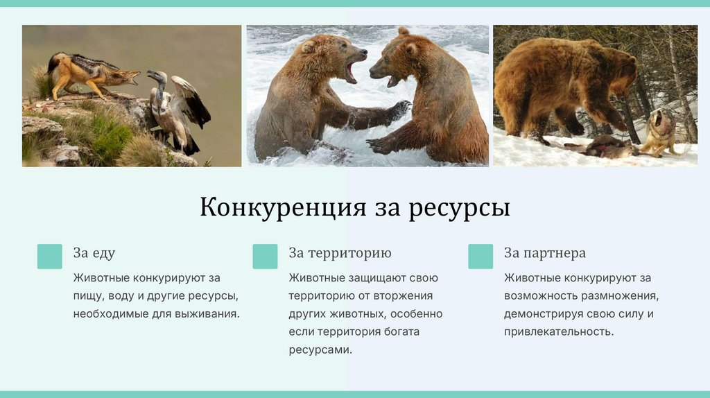 ограниченные ресурсы, такие как пища, вода или партнеры.