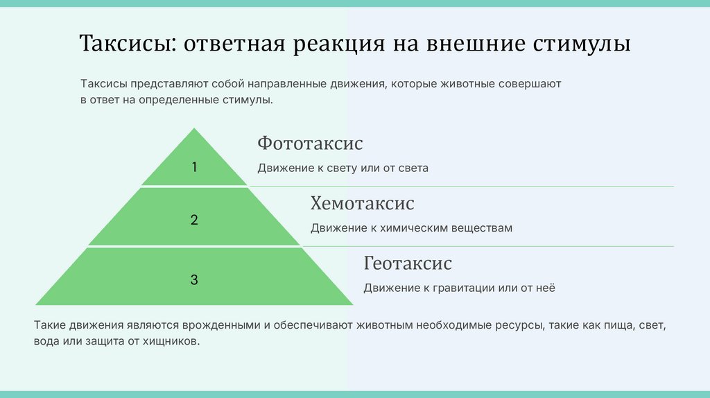 Таксисы: ответная реакция на внешние стимулыТаксисы представляют собой направленные движения, которые животные совершают