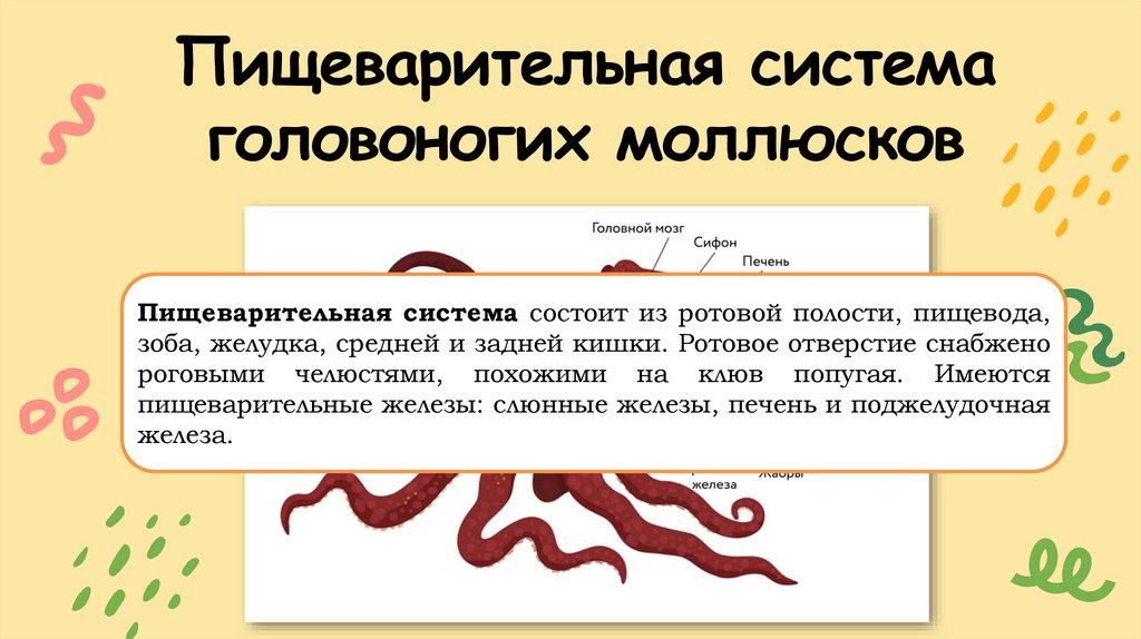 роговыми челюстями, похожими на клюв попугая. Имеются