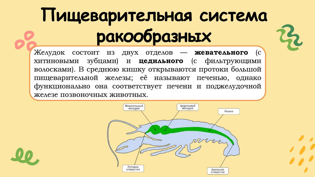 хитиновыми зубцами) и цедильного (с фильтрующими