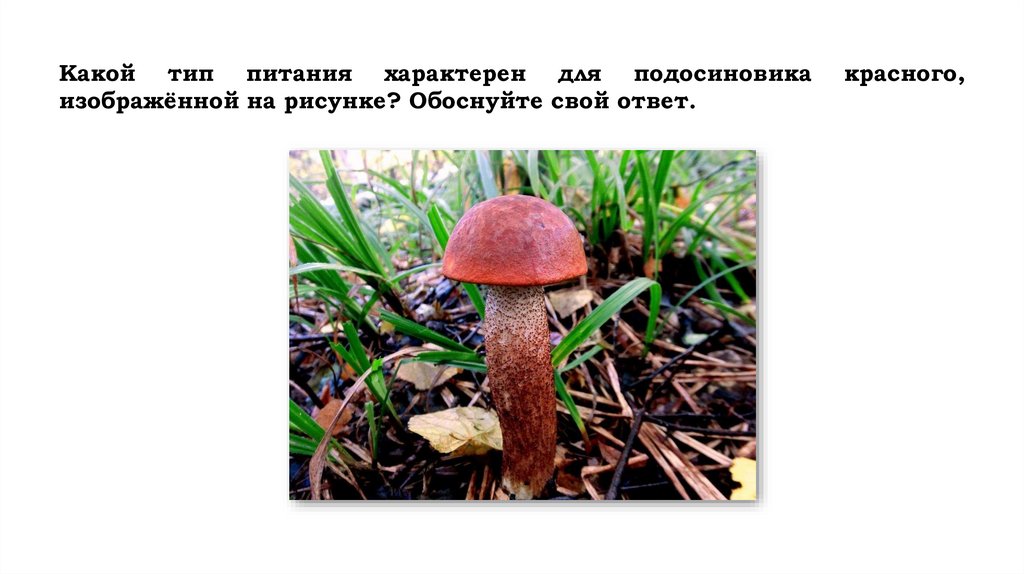 Какой тип питания характерен для подосиновикаизображённой на рисунке? Обоснуйте свой ответ.