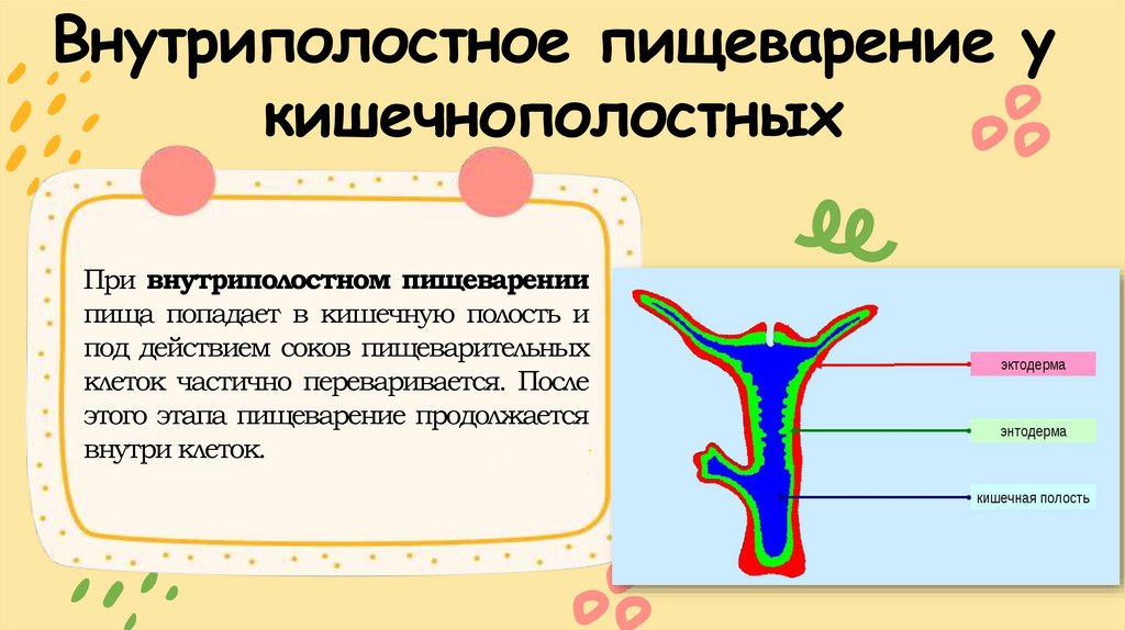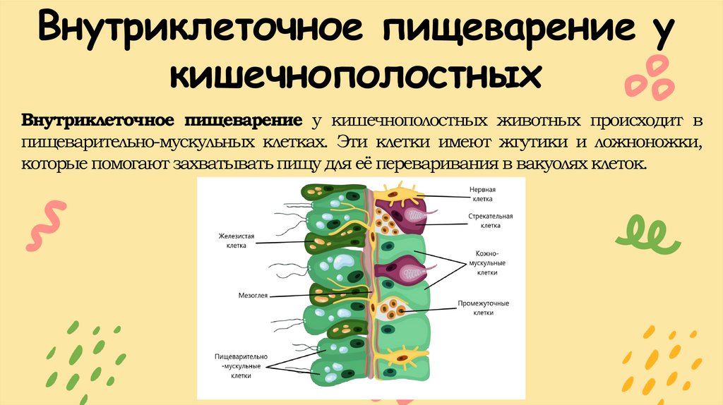 Внутриклеточное пищеварение у кишечнополостных животных происходит в