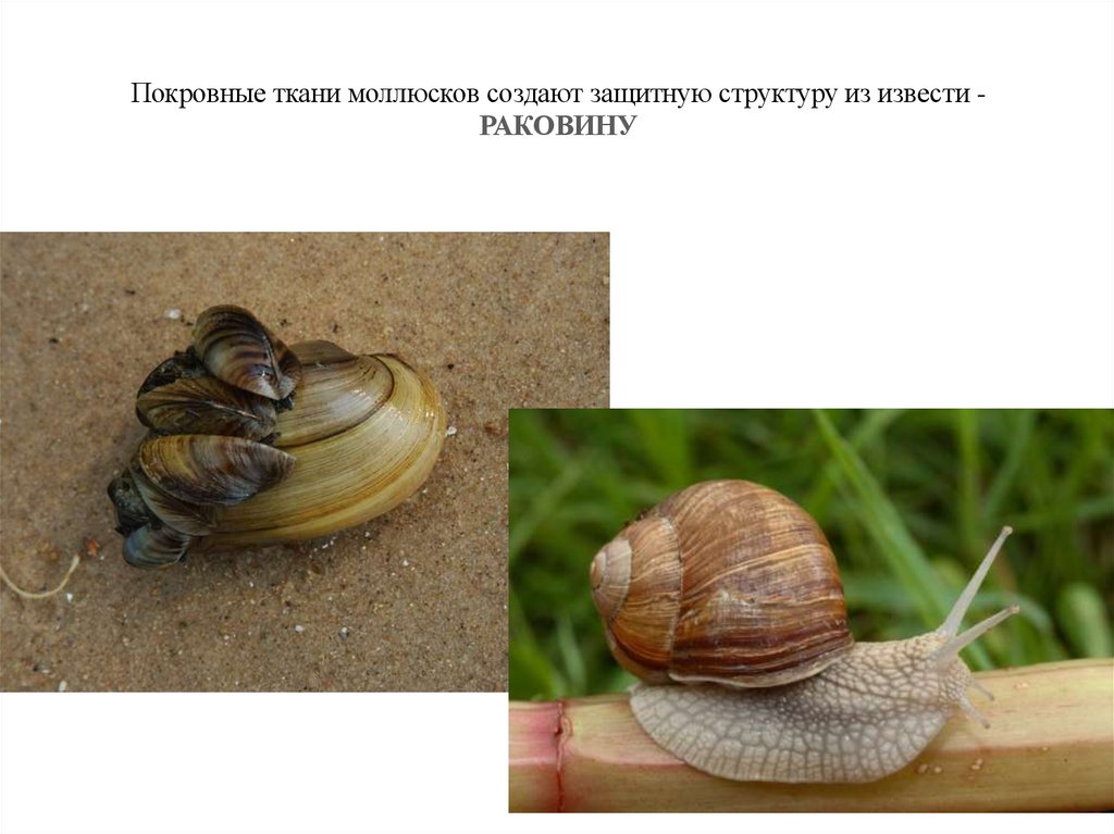 Покровные ткани моллюсков создают защитную структуру из извести РАКОВИНУ14.