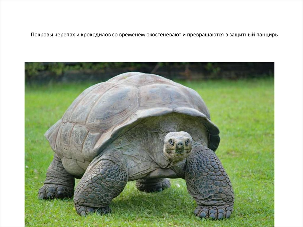 Покровы черепах и крокодилов со временем окостеневают и превращаются в защитный панцирь18.