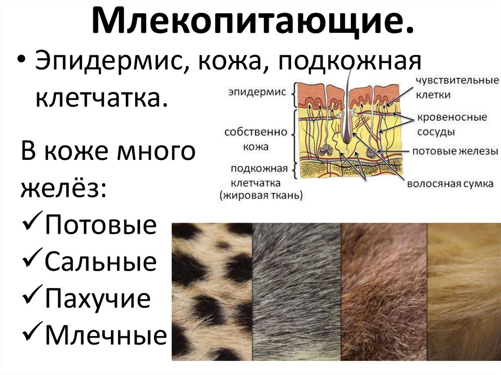 Млекопитающие.• Эпидермис, кожа, подкожная