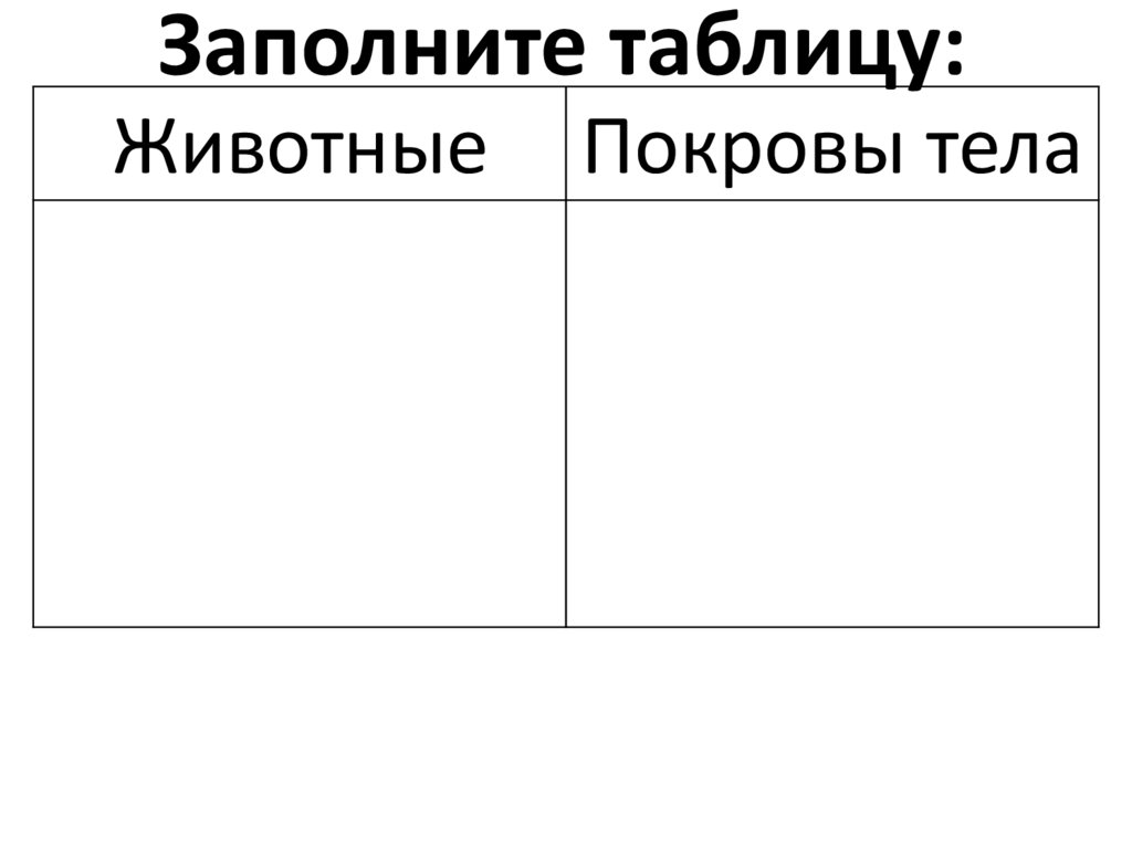 Заполните таблицу:Животные