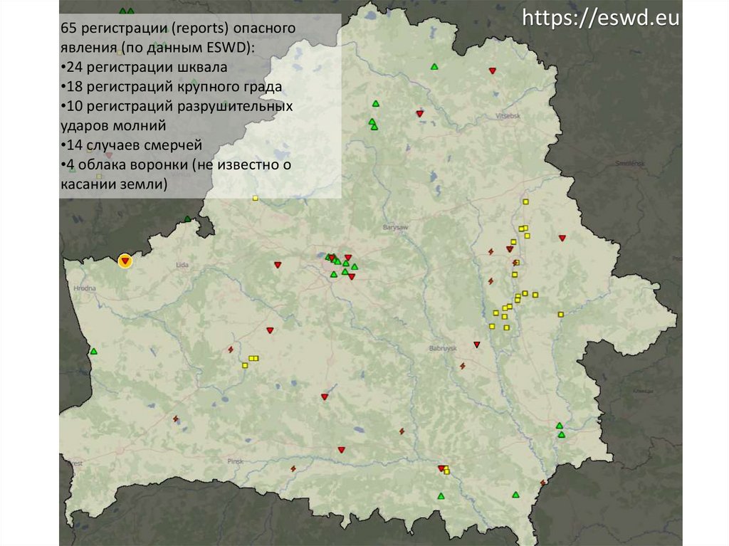 1. Наземные наблюдения за опасными конвективными явлениями в теплый период 2025 года на территории Беларуси