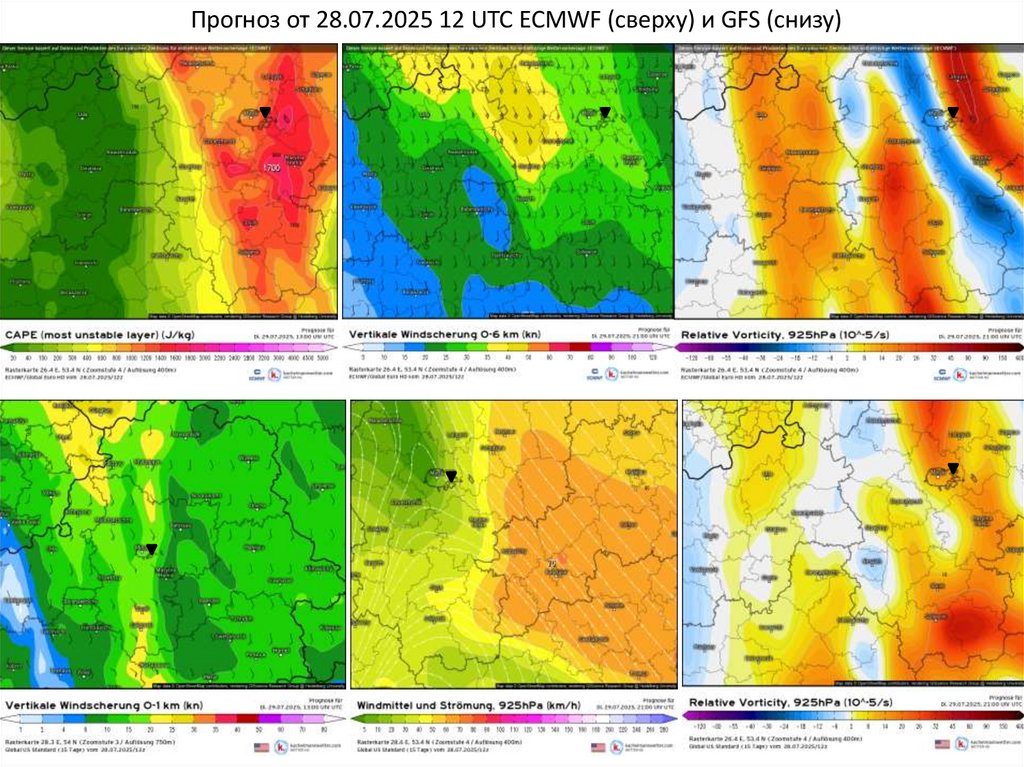Прогноз от 28.07.2025 12 UTC ECMWF (сверху) и GFS (снизу)17.