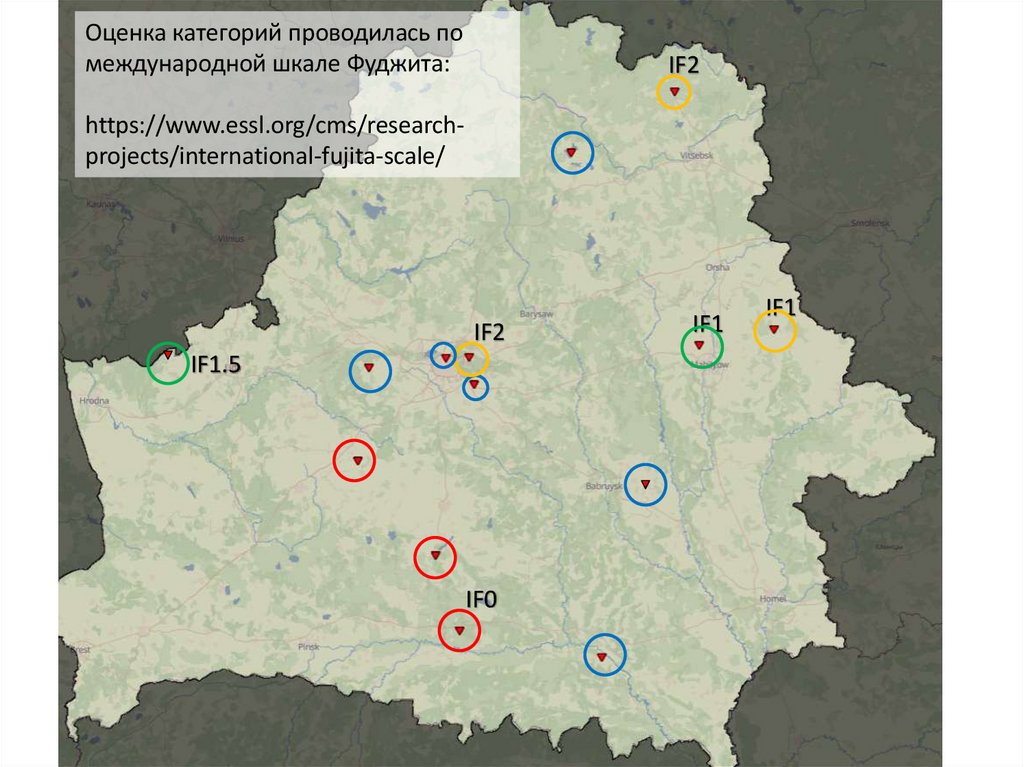 Оценка категорий проводилась помеждународной шкале Фуджита: