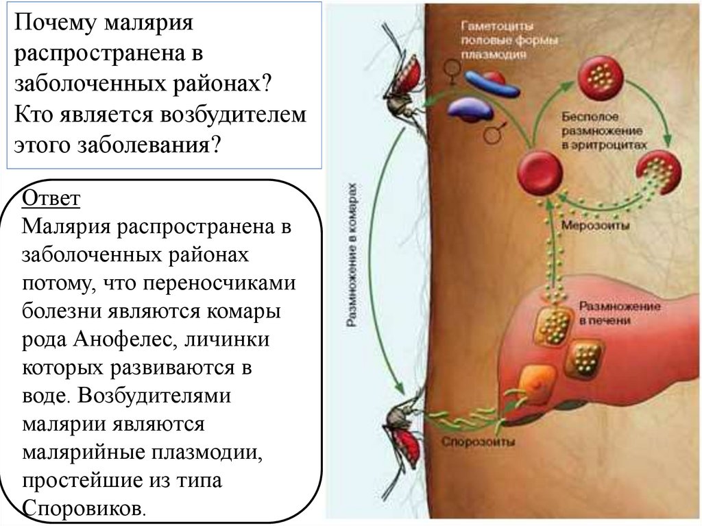 Цикличность приступов малярии обусловлена цикличностью выходов мерозоитов и