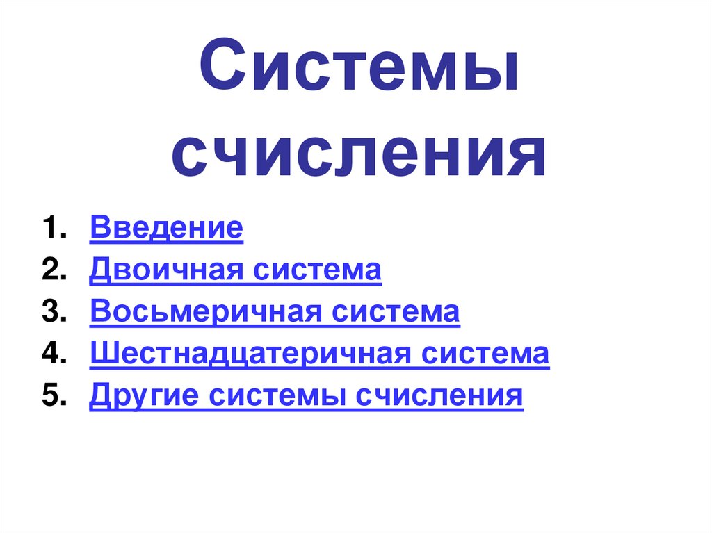 • двоичная, восьмеричная, шестнадцатеричная (информатика)