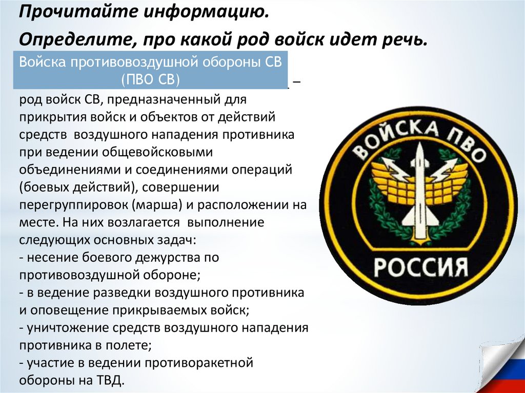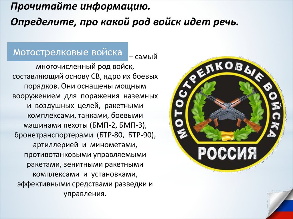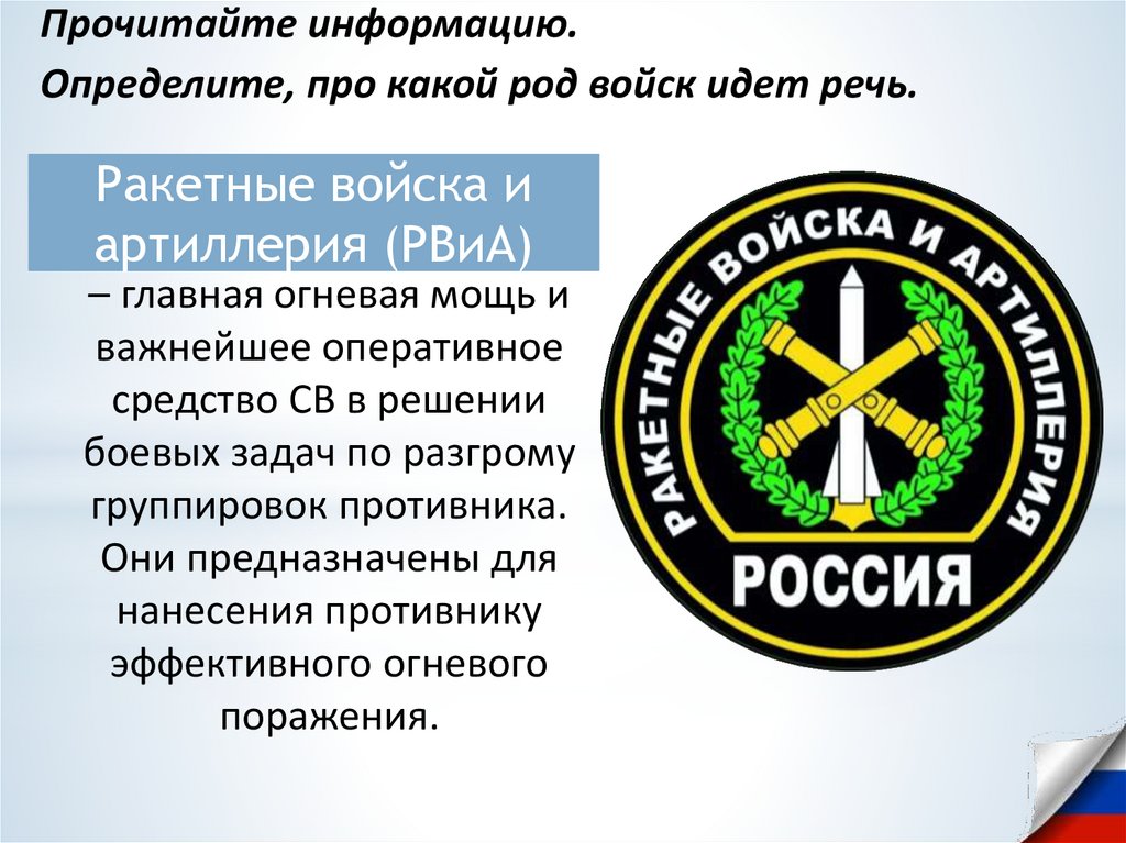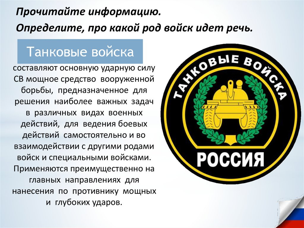 Прочитайте информацию.Определите, про какой род войск идет речь.