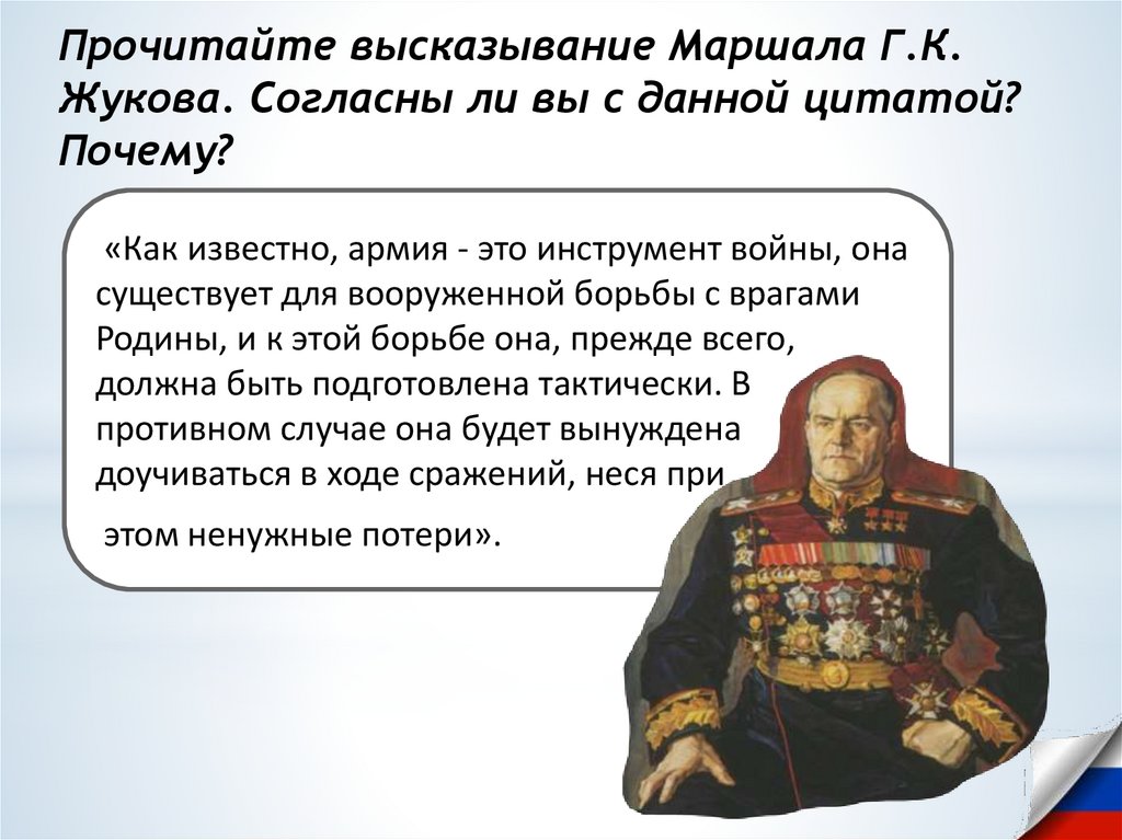 Прочитайте высказывание Маршала Г.К.Жукова. Согласны ли вы с данной цитатой?