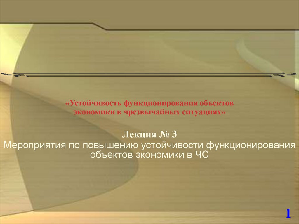 «Устойчивость функционирования объектовэкономики в чрезвычайных ситуациях»