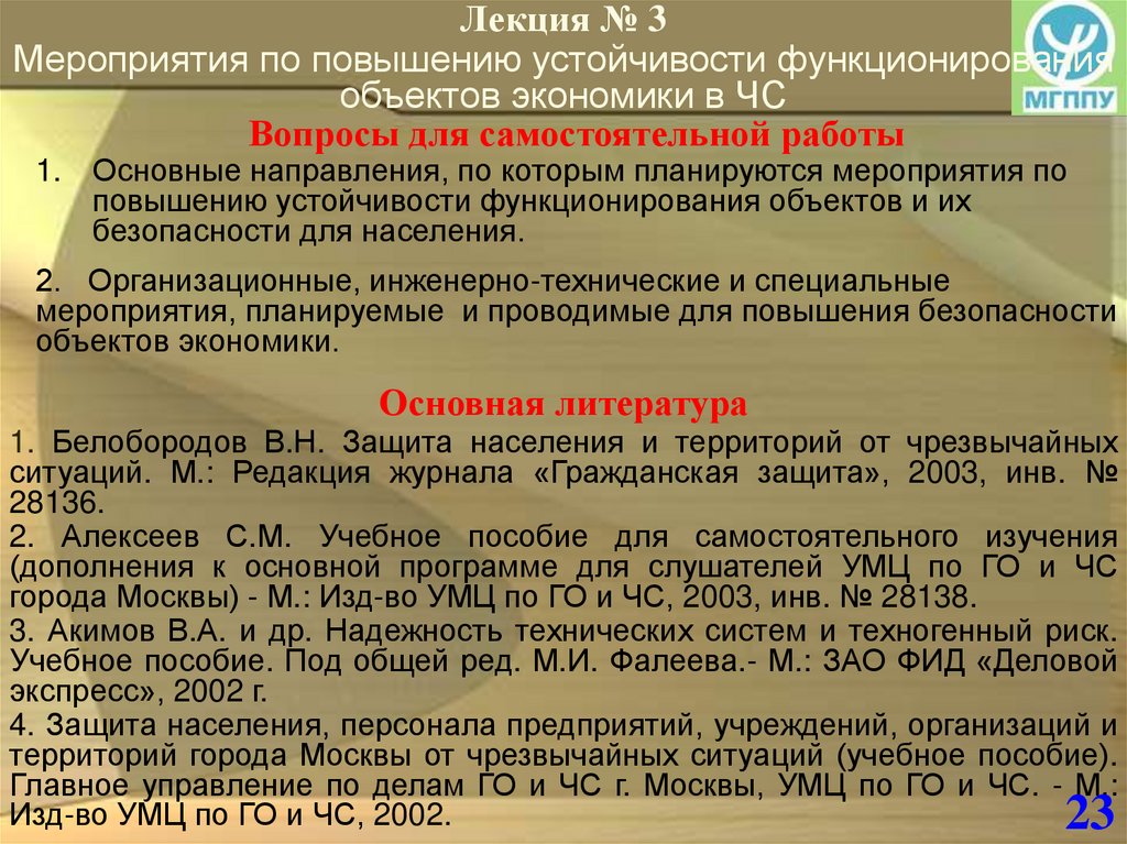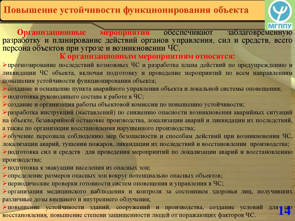 Лекция № 3Мероприятия по повышению устойчивости функционирования