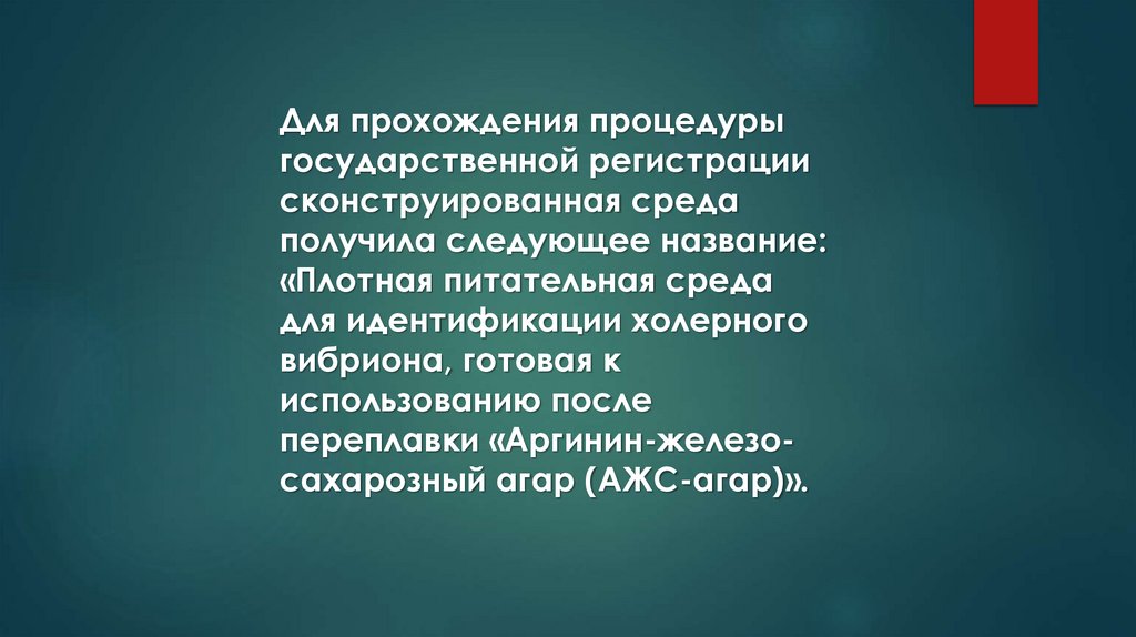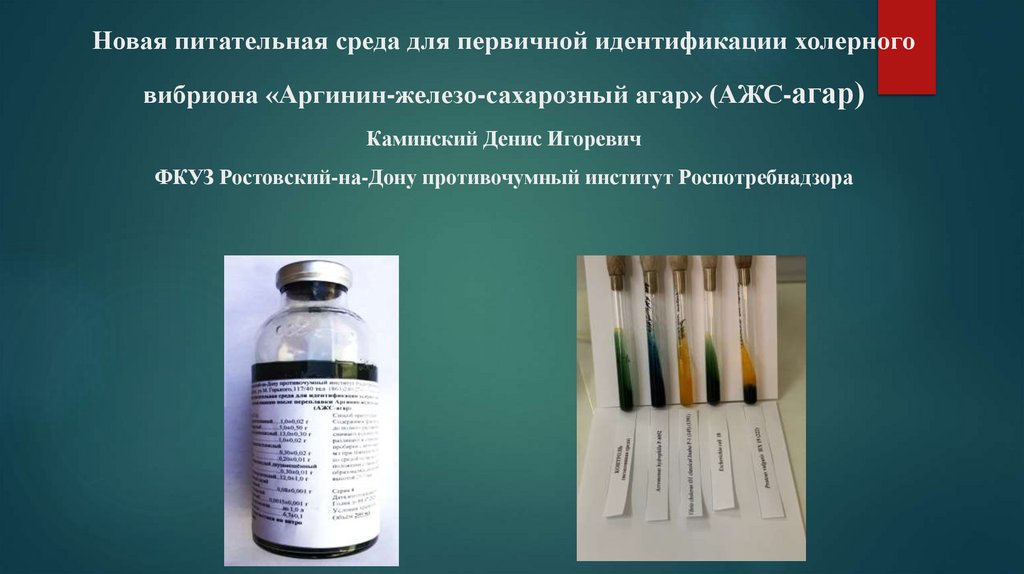 1. Новая питательная среда для первичной идентификации холерного вибриона «Аргинин-железо-сахарозный агар» (АЖС-агар) Каминский